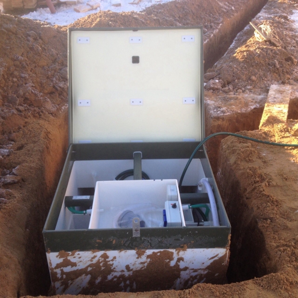 Глубина залегания подводящей трубы - 90 см и высота - 2.5 м. Станция может устанавливаться в случаях, когда нет необходимости проводить канализационную трубу ниже 80 см.
