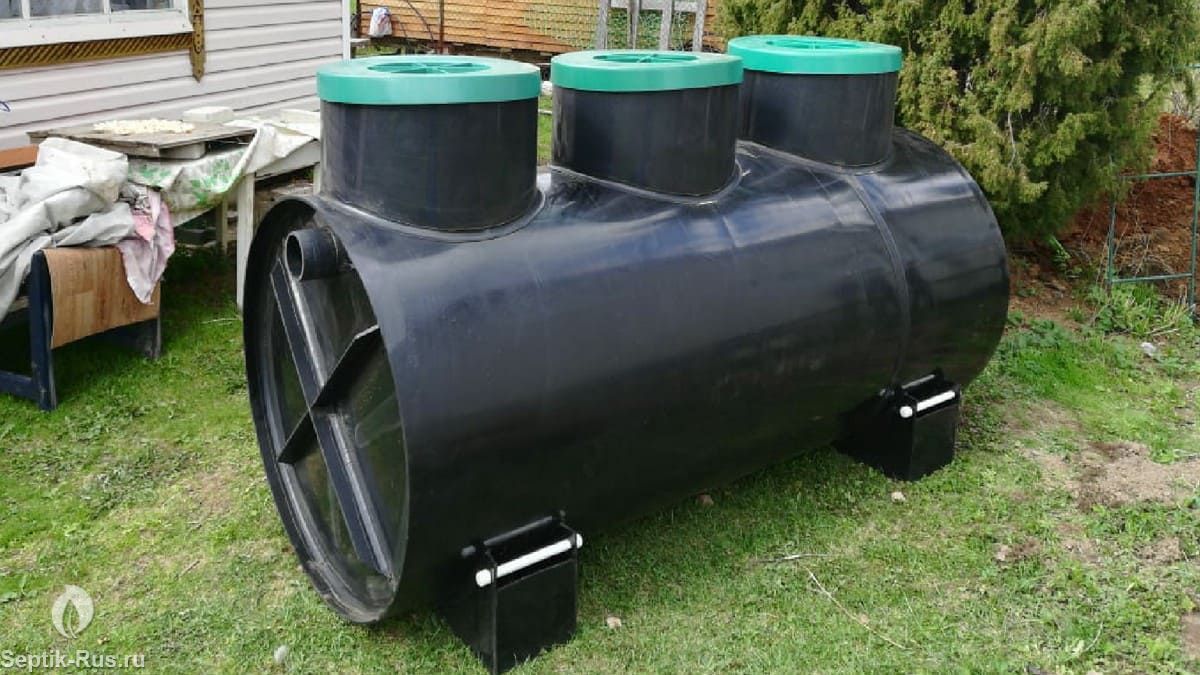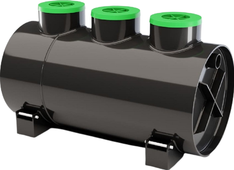 Септик выполнен в виде пластиковой емкости цилиндрической формы, разделенной на технологические отсеки.