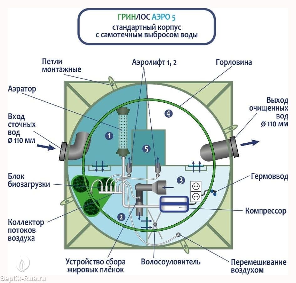 Отличительными особенностями септика ГРИНЛОС Аэро 5 являются:
