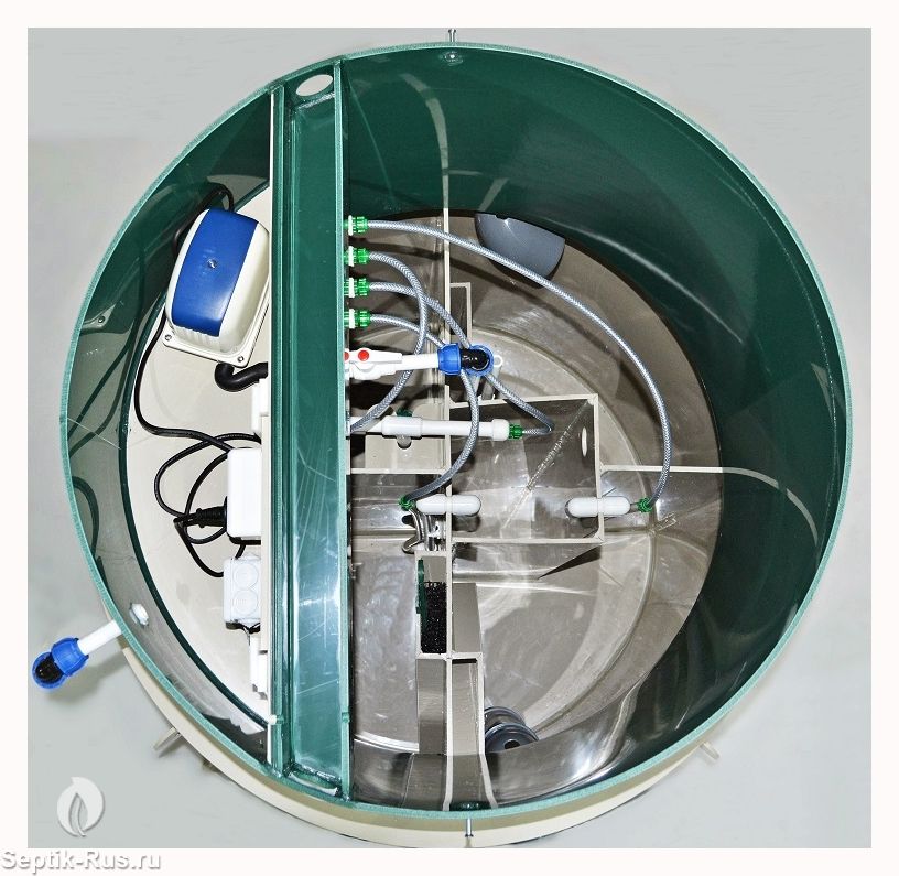 Станция Аэро 8 сконструирована таким образом, что все камеры, в которых происходит аэрация, разделение и осветление стоков объединены в одном корпусе цилиндрической или овальной формы.