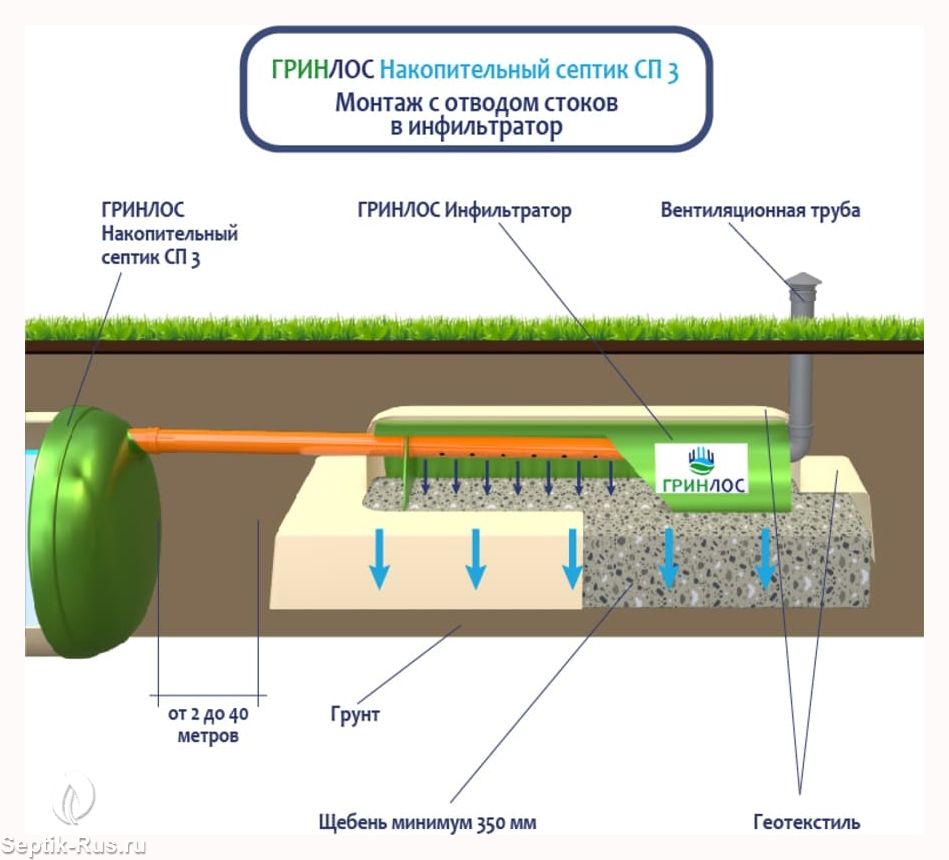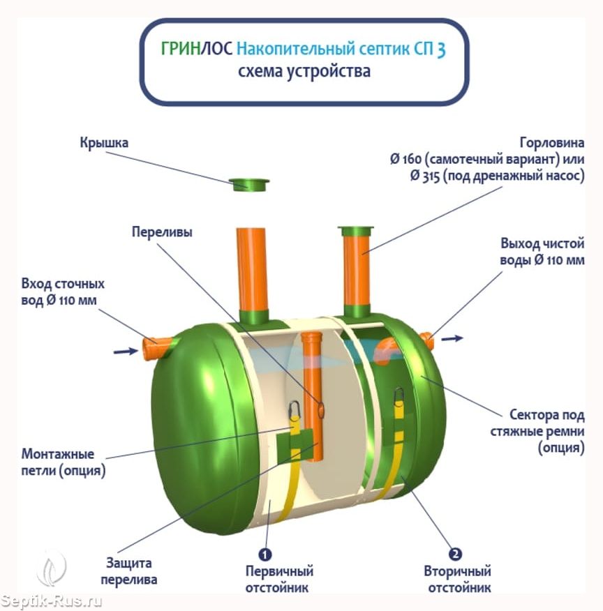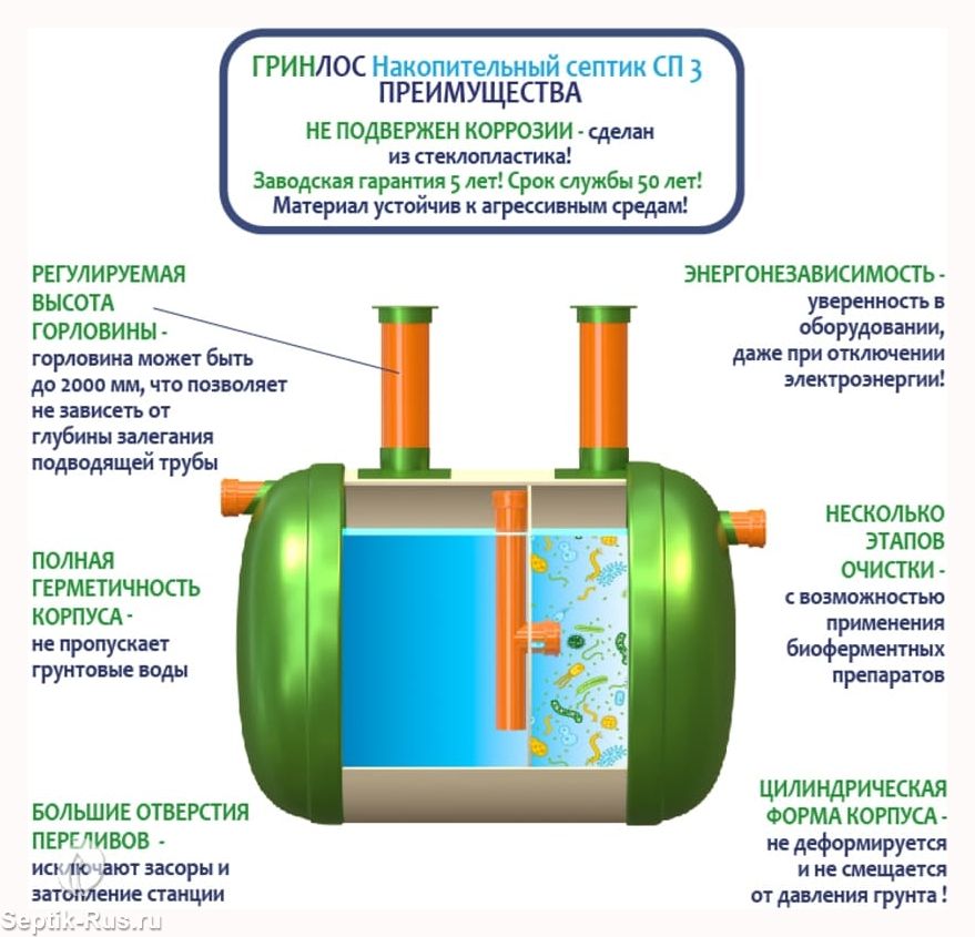 Доставим и установим септик Накопительный септик Гринлос СП 3 за 1 день по цене ниже конкурентов и скидкой на монтаж до 29%. Звоните!