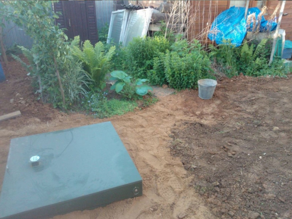 - Финальная засыпка песком (при высоком уровне грунтовых вод - пескоцементом): уплотнение слоёв через каждые 30 см, «проливка» песка водой обязательна, одновременное заполнение водой камеры Малахит 4. Равномерное заполнение всех блоков септика водой.